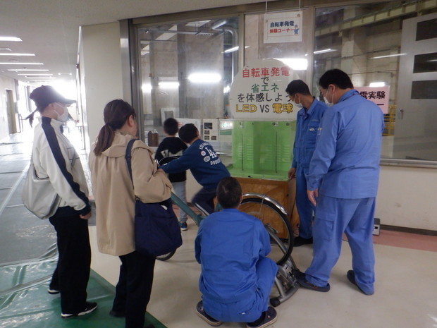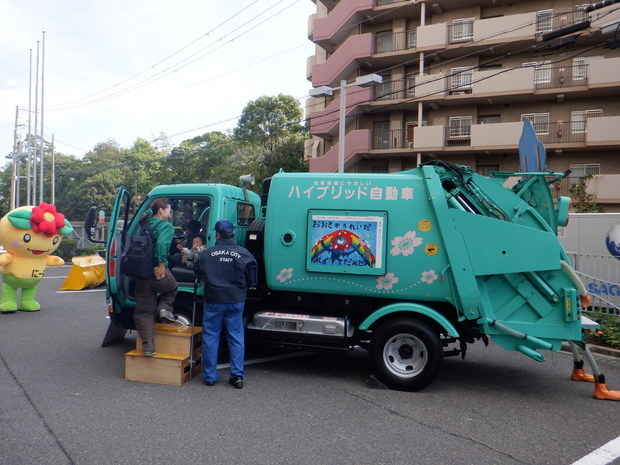 恒例の工場見学とスタンプラリー、パッカー車・ショベルカーの乗車体験に水素カー「ミライ」も展示し、西淀工場見学クイズ、模擬クレーン操作や自転車発電体験、缶バッジ・水素ロケット実験などの工作等の体験やタブレット学習を通じて、ごみ処理の仕組み、ごみの分別や減量などの省エネ等について楽しみながら学んでいただきました。また、西淀川区のマスコットキャラクター「に~よん」も市民の皆様の人気の的で、お子様がに~よんとのふれあいを楽しまれていました。