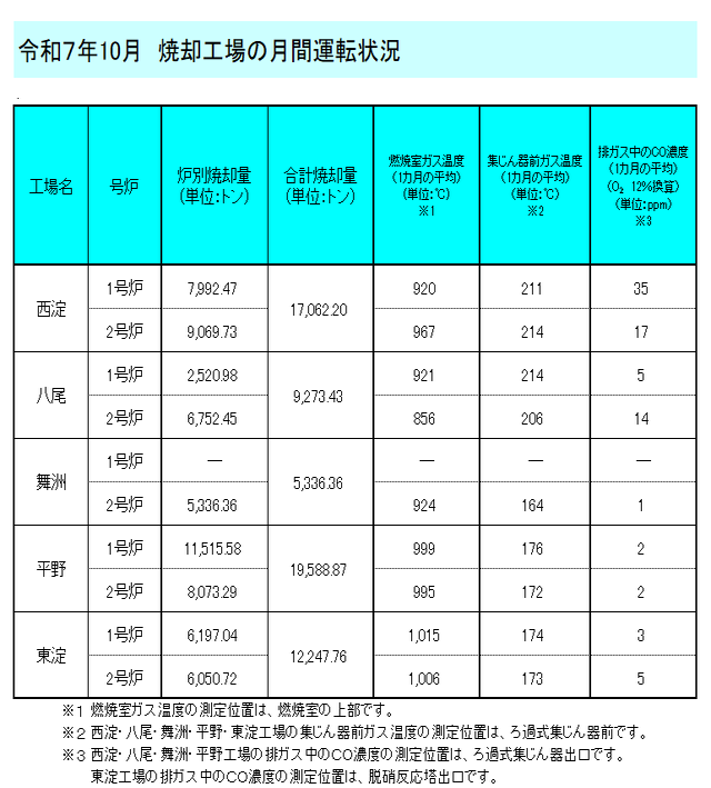 月間運転状況 処理する一般廃棄物の種類 処理する一般廃棄物の種類:可燃ごみ ※4 住之江工場の月間運転状況は、運営事業者ホームページに掲載されています。 https://suminoe-ht.com/info/(外部リンク) 月間運転状況 令和7年度 令和6年度 令和5年度 焼却工場の運転状況については、各工場へお問い合わせください。お問合せ先